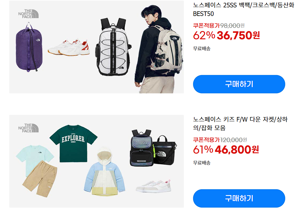 노스페이스 다양한 제품을 할인 판매하네요.