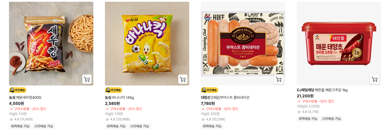 할인 품목 : 가공식품, 신선식품 등