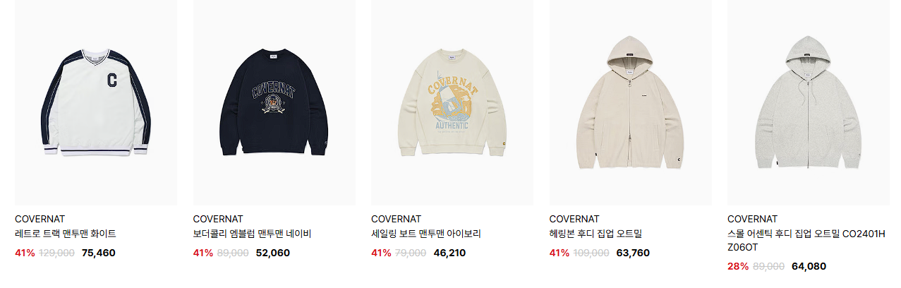 할인 품목 : 맨투맨, 후드티, 팬츠 등