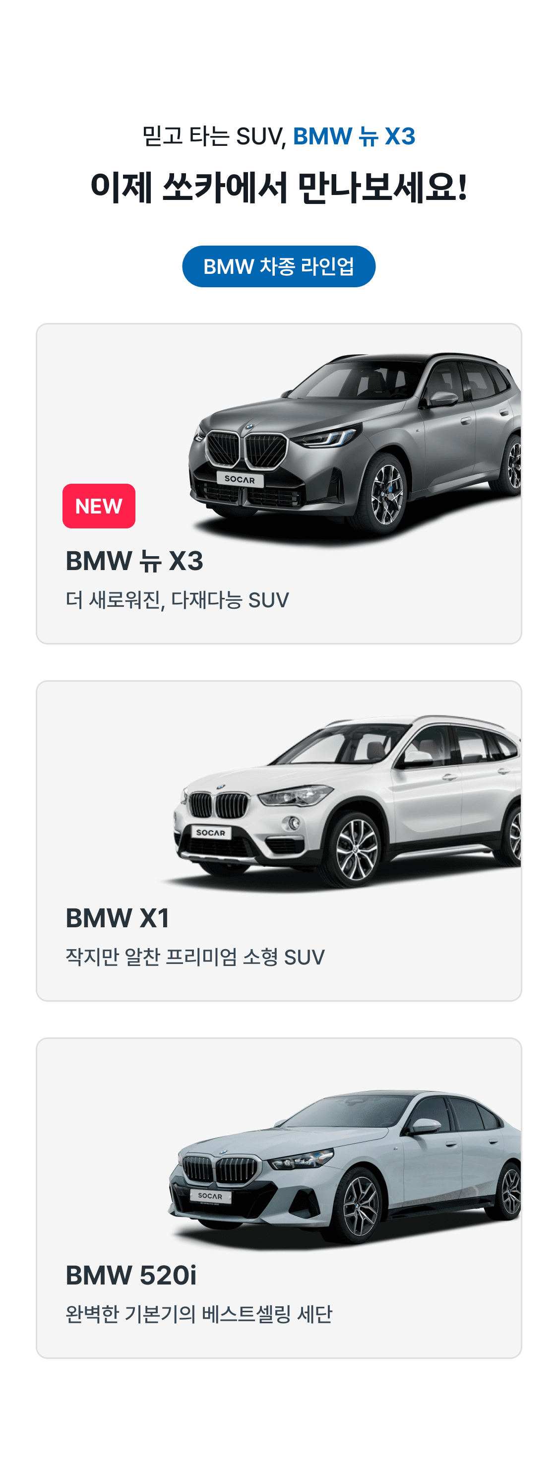 쏘카 BMW 전차종 대여 요금 60% 할인 이벤트를 진행하네요.