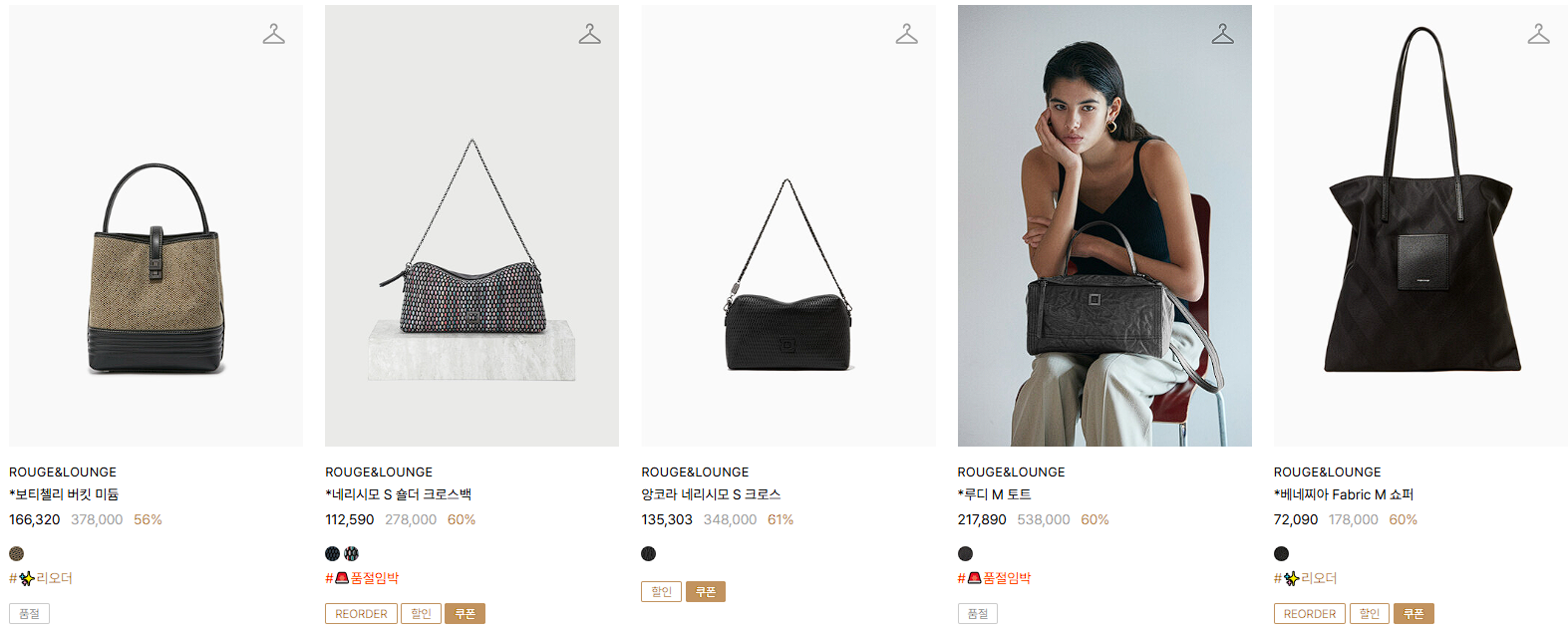 루즈앤라운지/SJYP 다양한 제품을 할인 판매하네요.