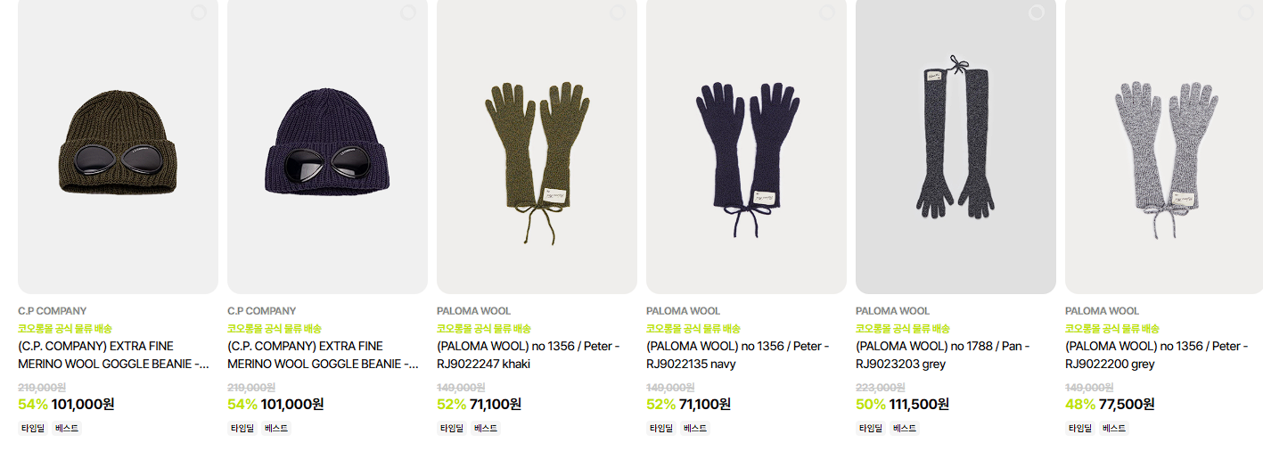 할인 품목 : 자켓, 니트, 장갑 등
