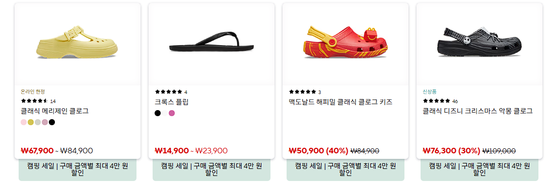 크록스 다양한 제품을 할인 판매하네요.