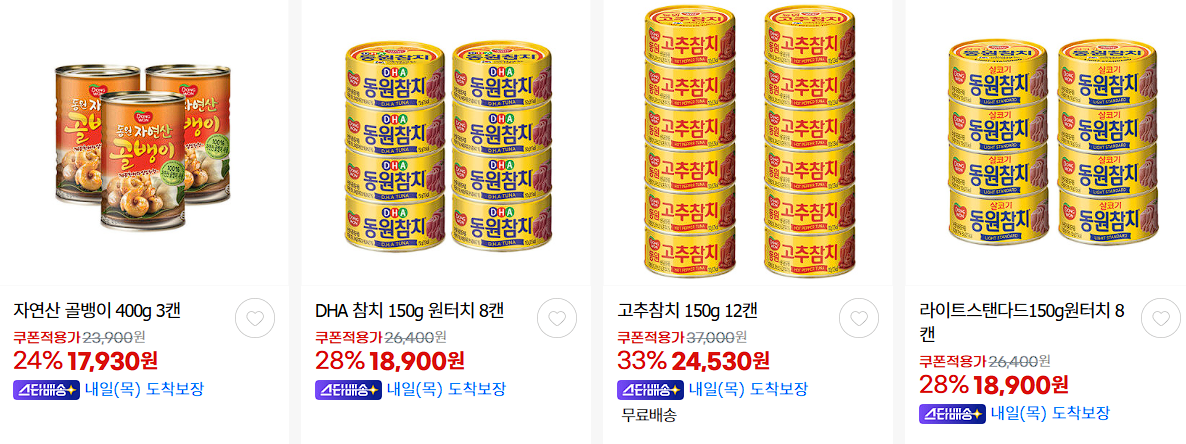 할인 품목 : 참치, 골뱅이, 리챔 등