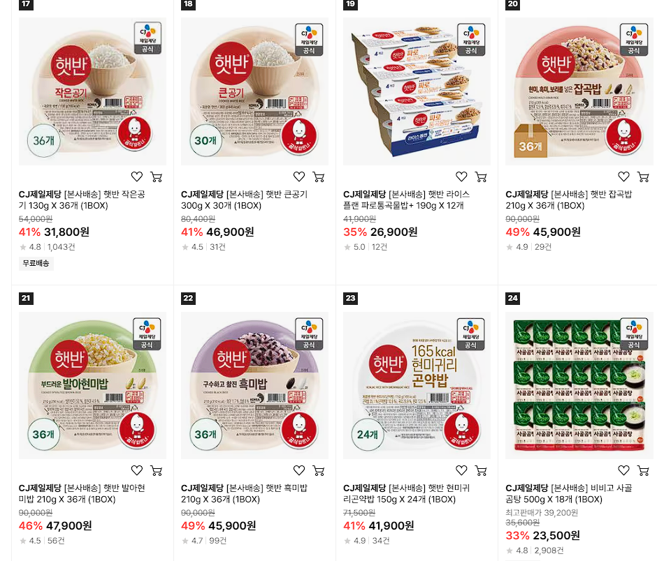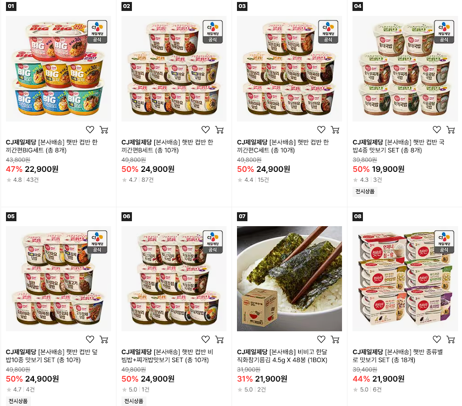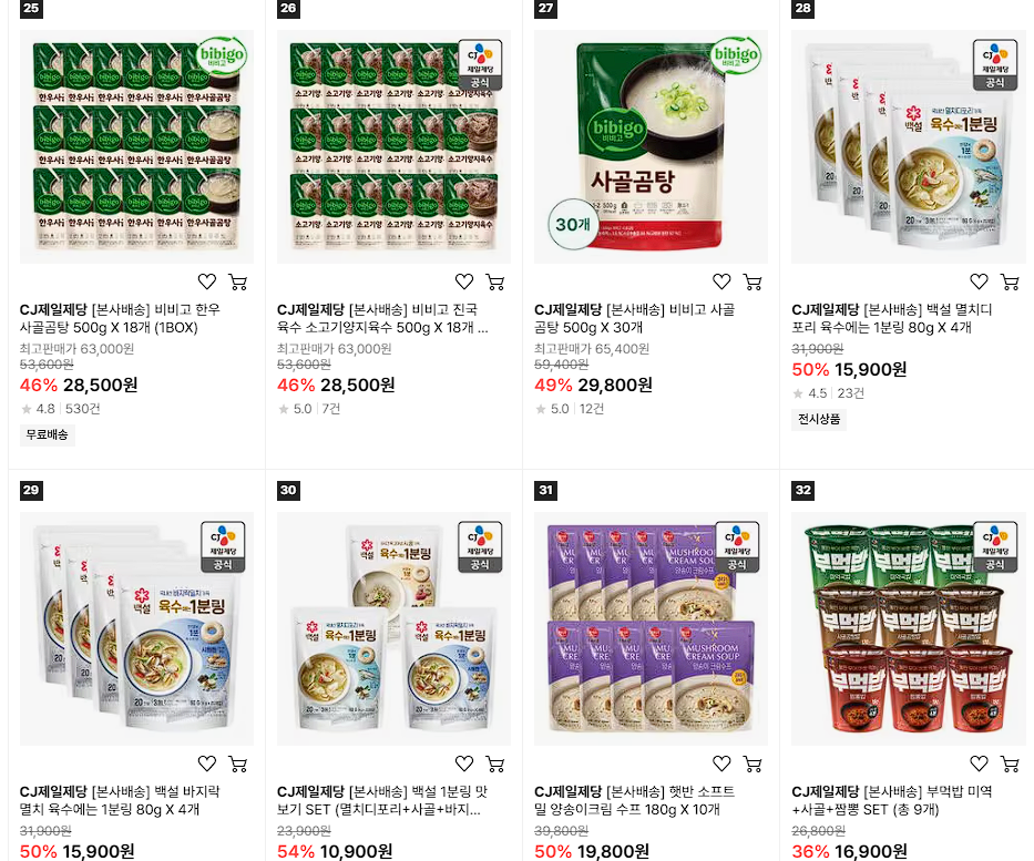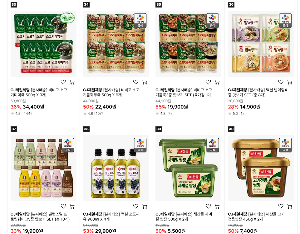CJ제일제당 다양한 제품을 할인 판매하네요.