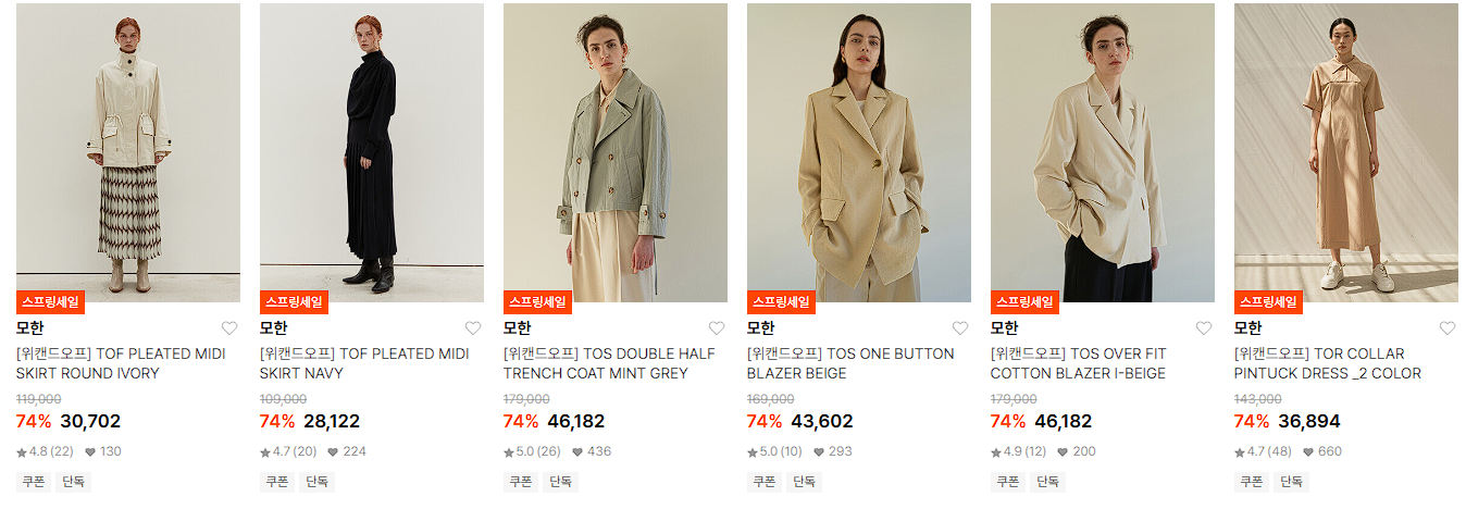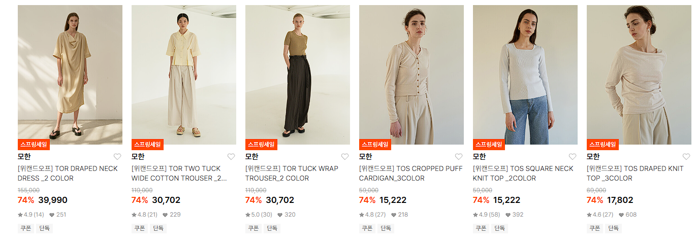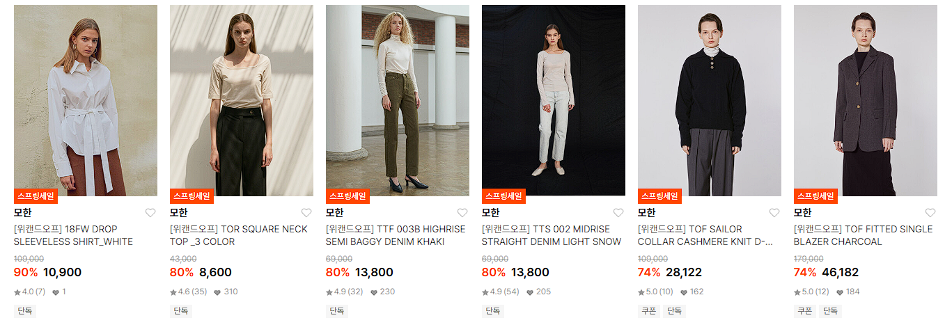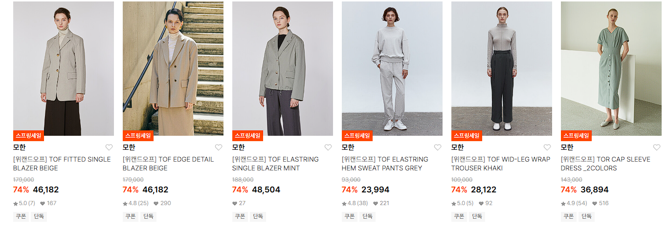 할인 품목 : 티셔츠, 자켓, 가디건 등