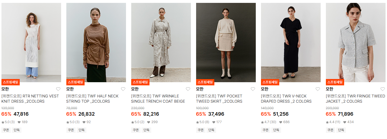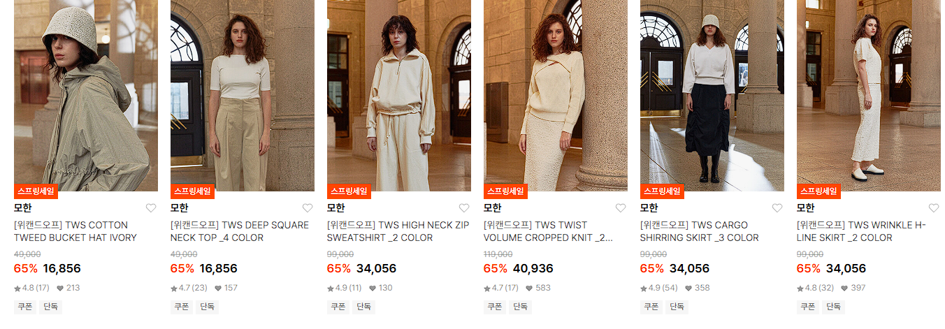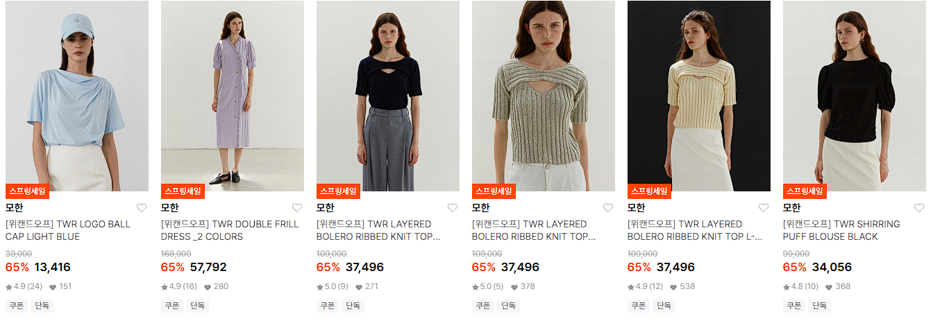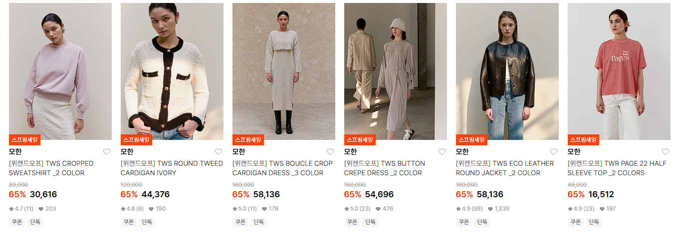 할인 품목 : 티셔츠, 자켓, 가디건 등