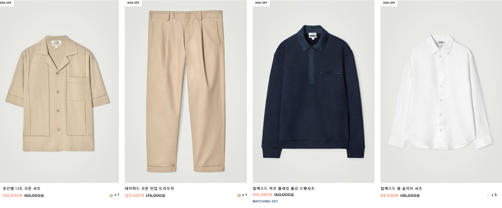 할인 품목 : 셔츠, 팬츠, 티셔츠 등