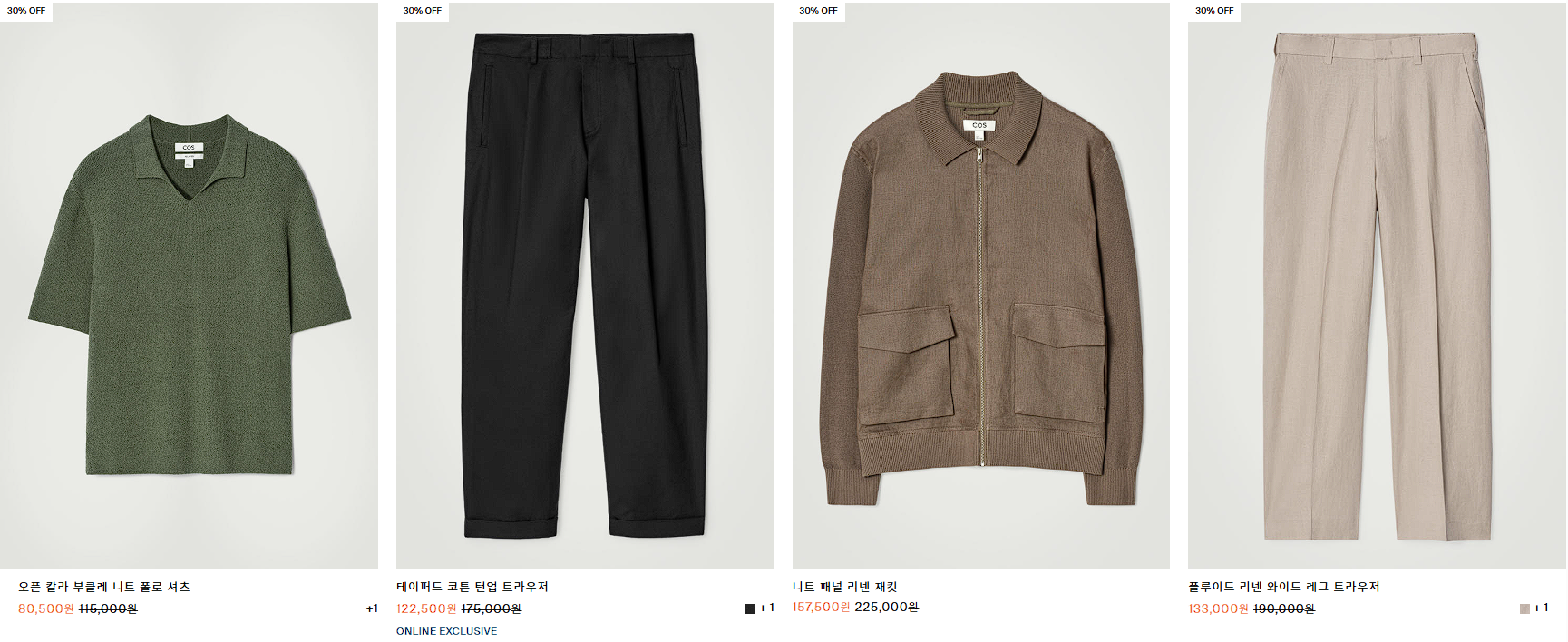 할인 품목 : 셔츠, 팬츠, 티셔츠 등