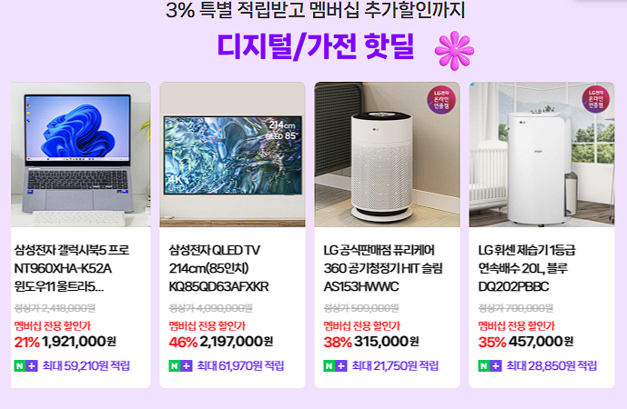 멤버십 회원 대상 20만원 이상 결제시 3% 특별 적립