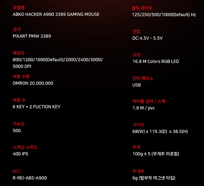 앱코 HACKER A900 3389 RGB 게이밍 마우스 할인 정보 [링크]