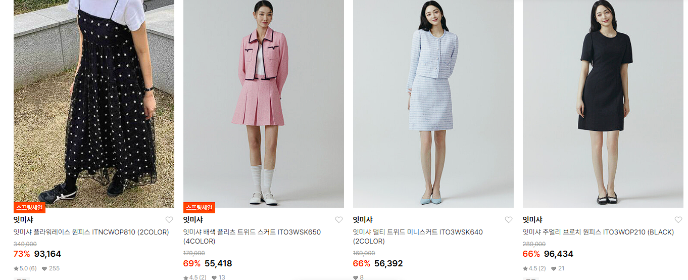 할인 품목 : 원피스, 자켓, 티셔츠 등