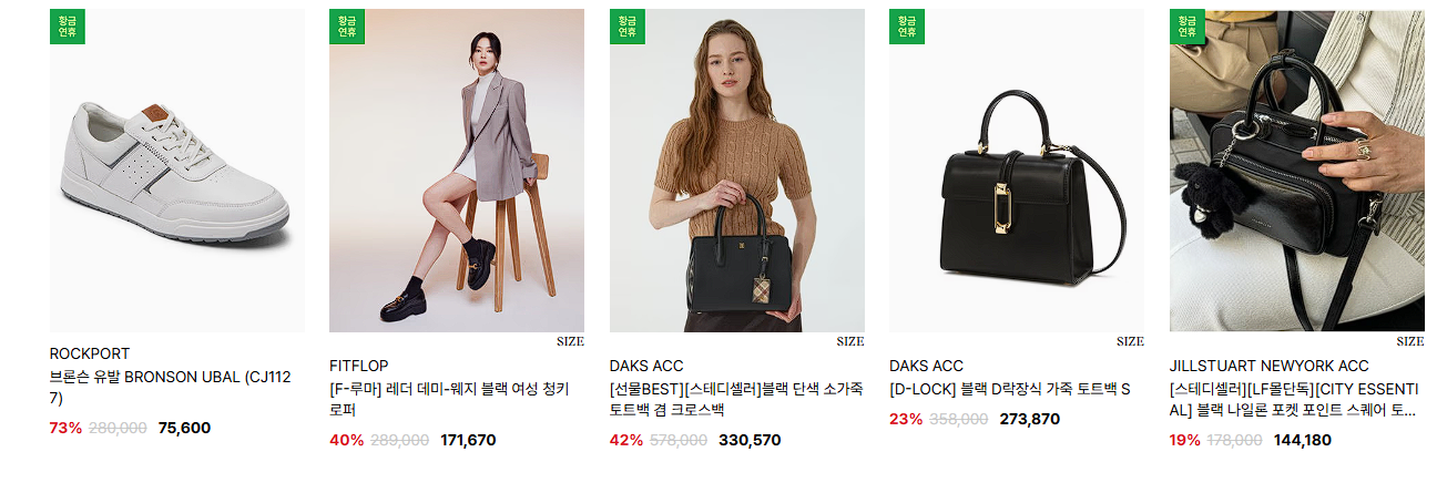 할인 품목 : 의류, 가방, 화장품 등