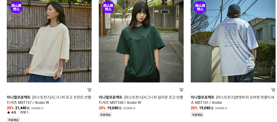 미니멀프로젝트 다양한 제품을 할인 판매하네요.
