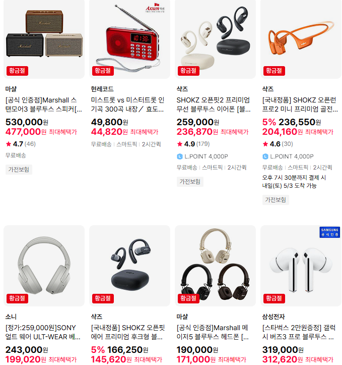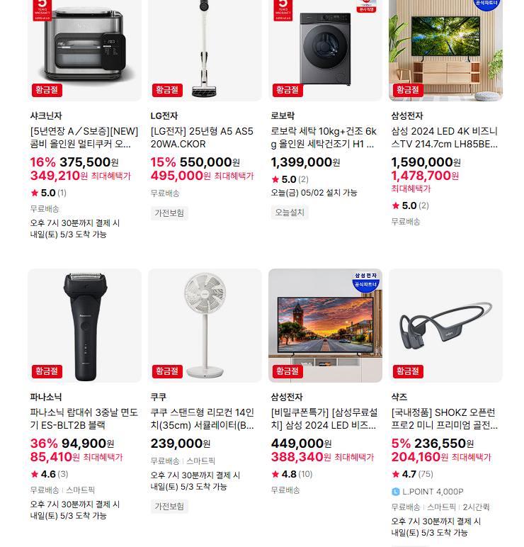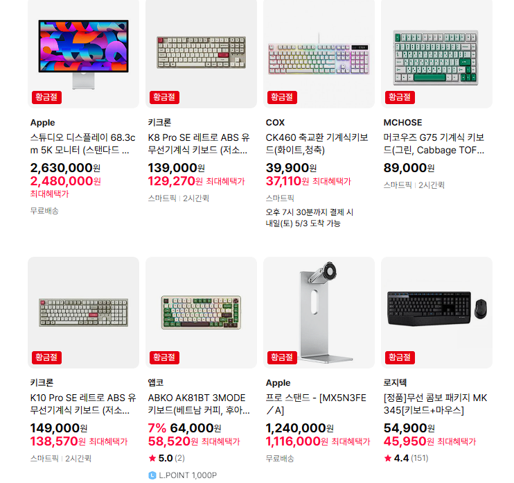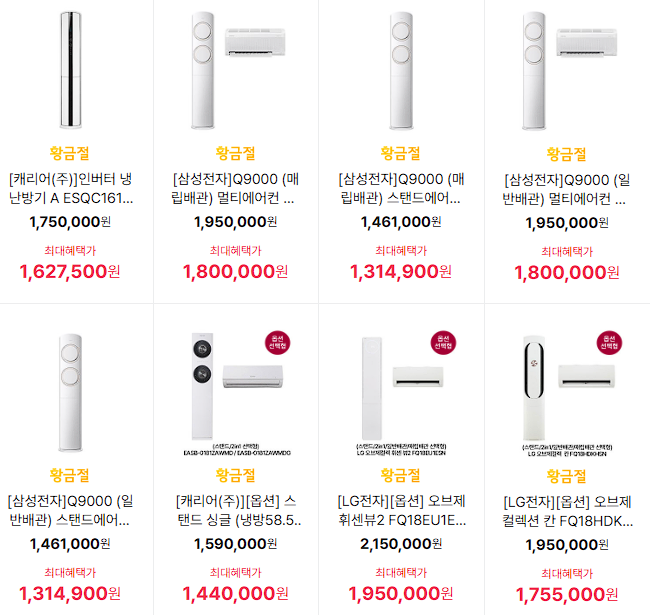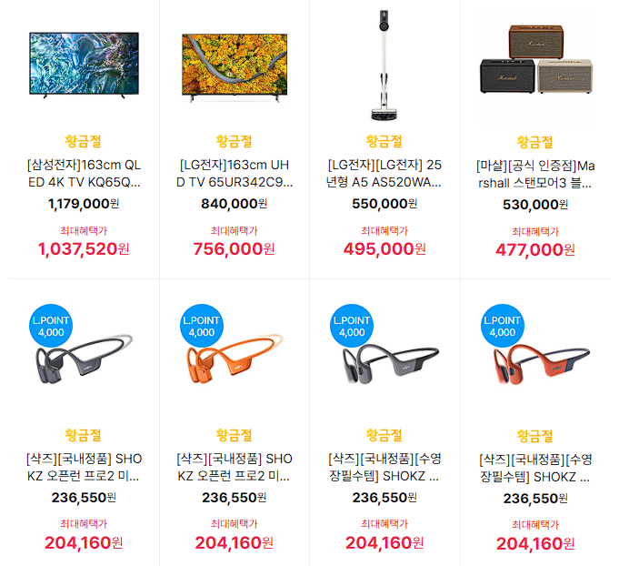 할인 품목 : 에어컨, 키보드, 헤드셋 등