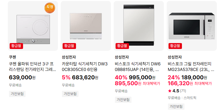 할인 품목 : 에어컨, 키보드, 헤드셋 등