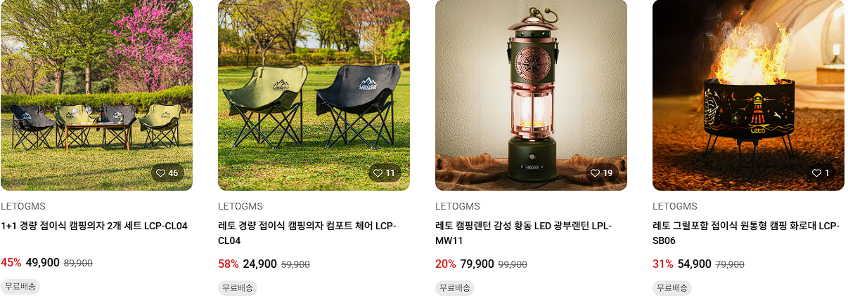 할인 품목 : 보조배터리, 파우치, 가방, 캠핑의자 등