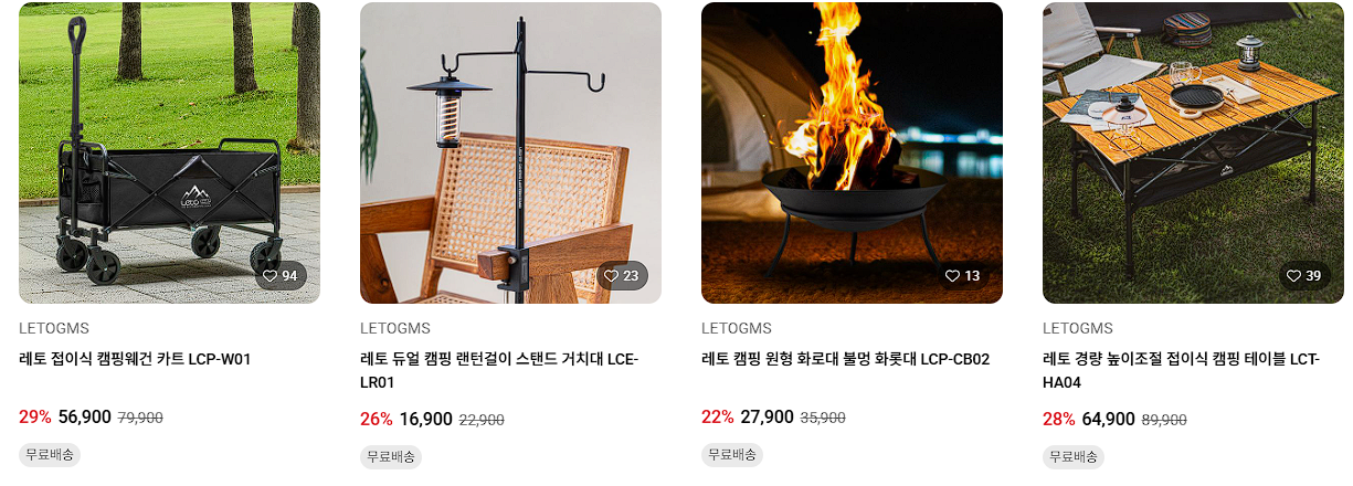 할인 품목 : 보조배터리, 파우치, 가방, 캠핑의자 등