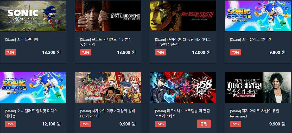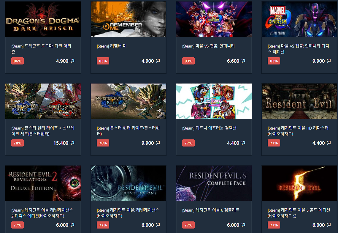 할인 게임 : 몬스터 헌터 라이즈, 토탈 워 시리즈, 바이오하자드 시리즈 등