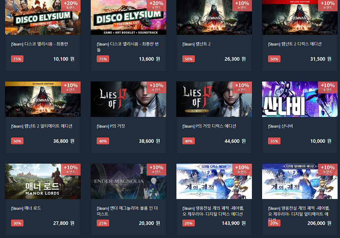 다이렉트게임즈 다양한 게임을 할인 판매하네요.