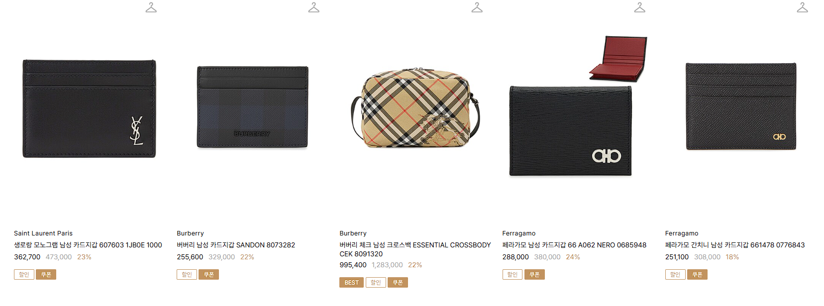 할인 품목 : 티셔츠, 지갑 등