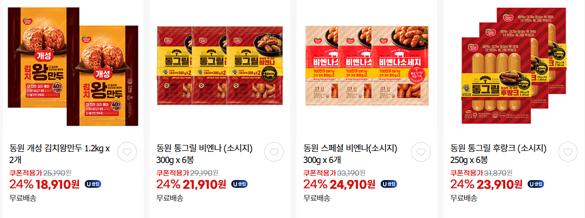 할인 품목 : 참치, 리챔, 핫도그, 만두 등