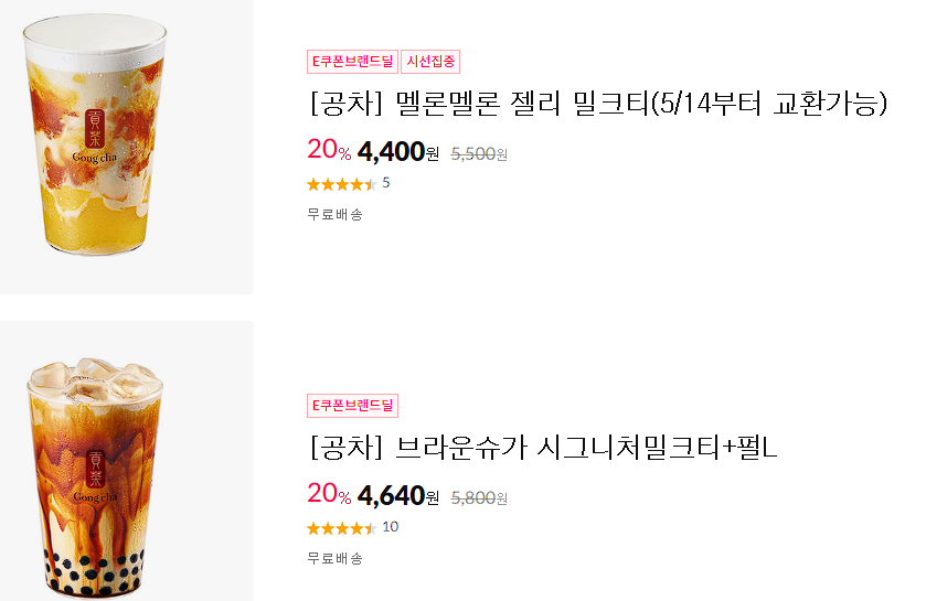 할인 브랜드 : 공차, 투썸, 피자헛 등