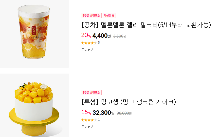 할인 브랜드 : 공차, 투썸, 피자헛 등