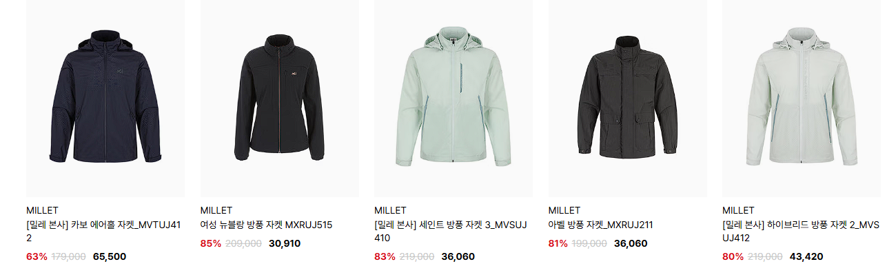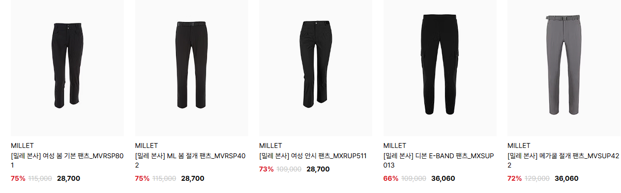 할인 품목 : 티셔츠, 자켓, 팬츠 등
