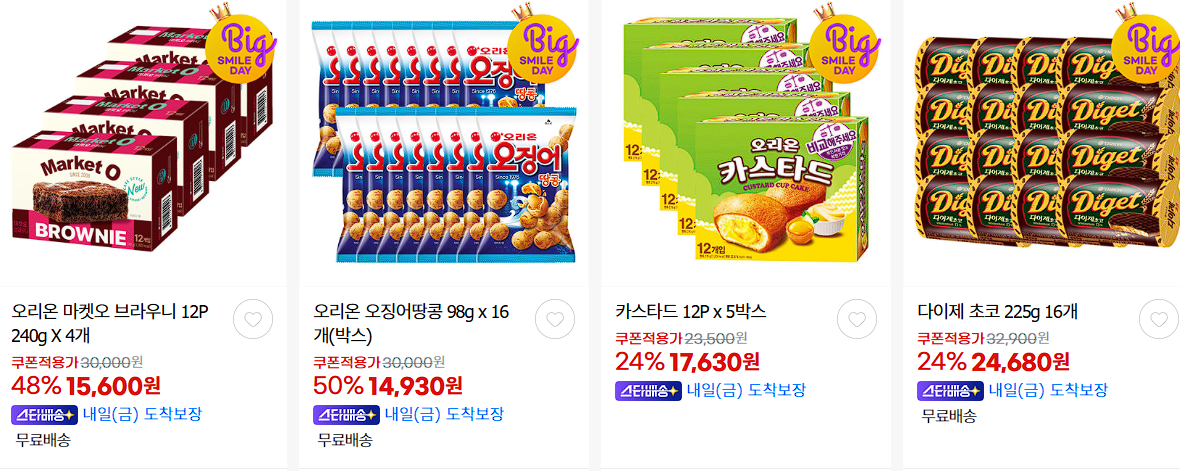 할인 품목 : 고래밥, 꼬북칩, 초코파이 등