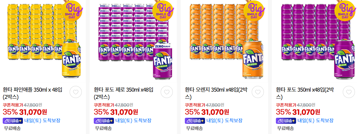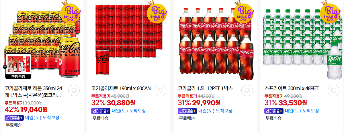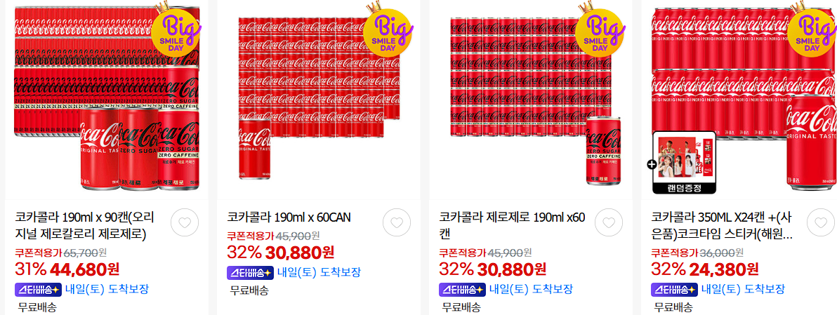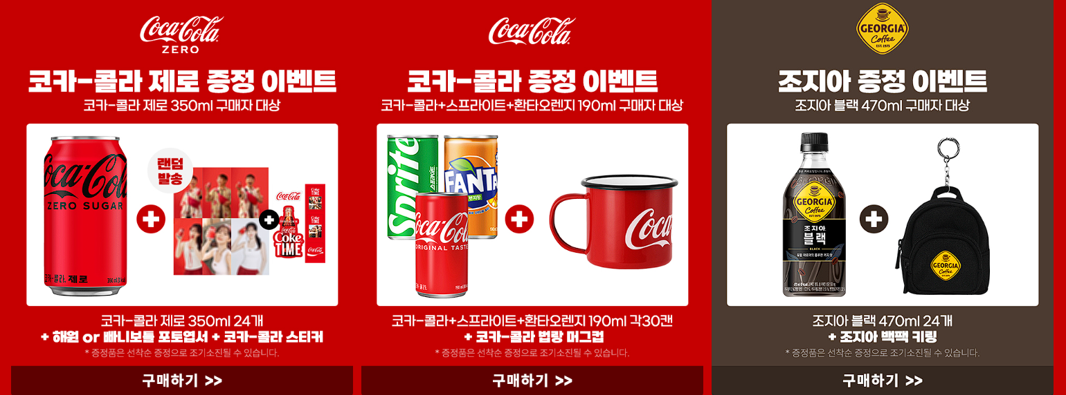 할인 품목 : 코카콜라, 환타, 조지아 등