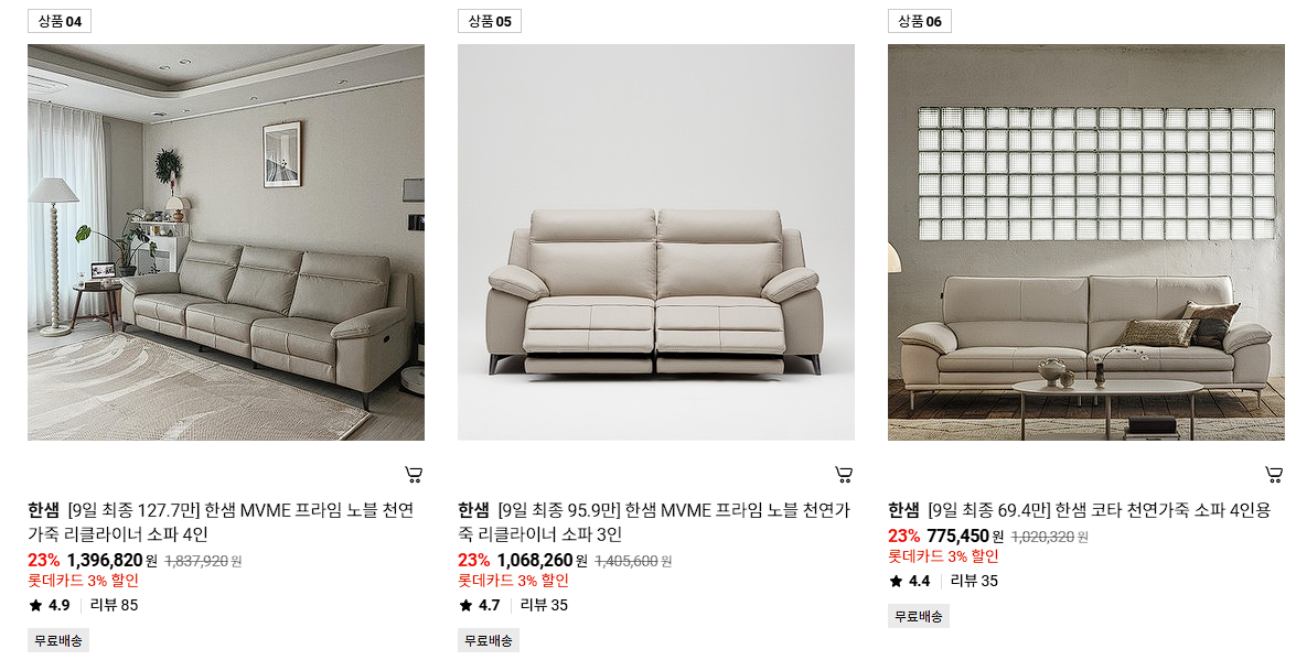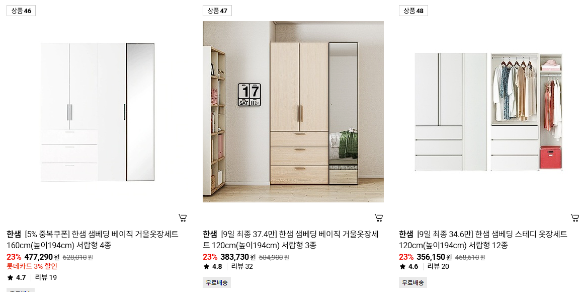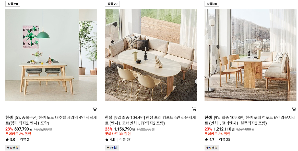 한샘 다양한 제품을 할인 판매하네요.