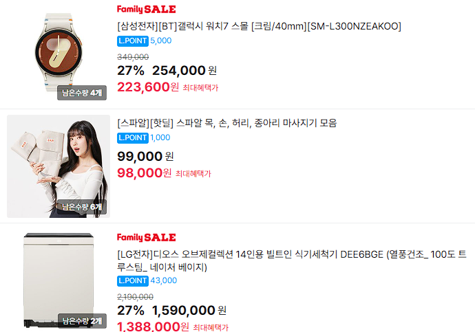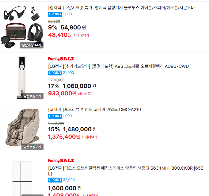 할인 품목 : 제습기, 키보드, 세탁기 등