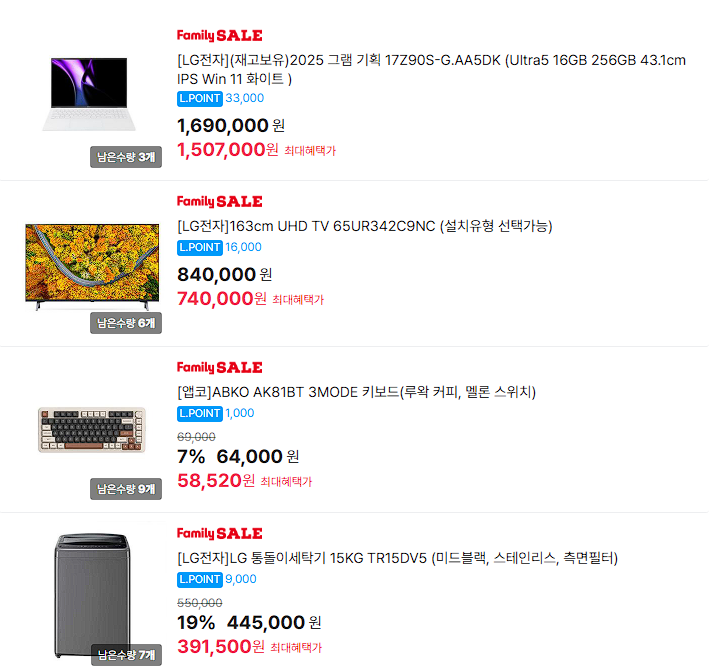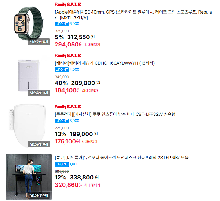 할인 품목 : 제습기, 키보드, 세탁기 등