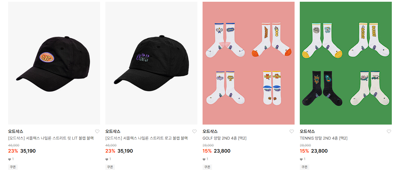 오드삭스 다양한 제품을 할인 판매하네요.