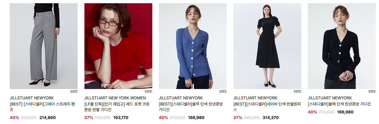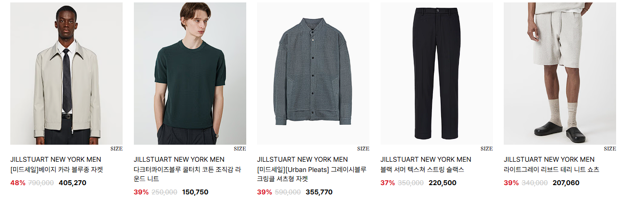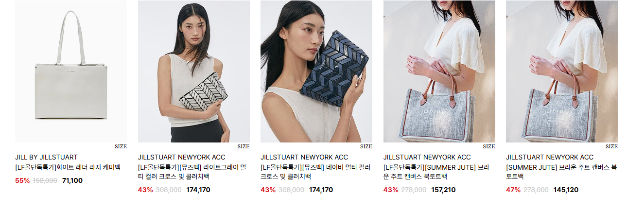할인 품목 : 의류, 가방, 지갑 등