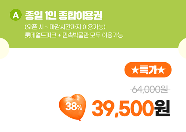롯데월드 종합이용권 38% 할인 판매하네요.
