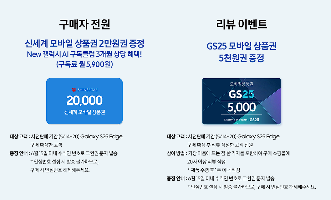 삼성 갤럭시 S25 엣지 사전 예약 이벤트 진행하네요.