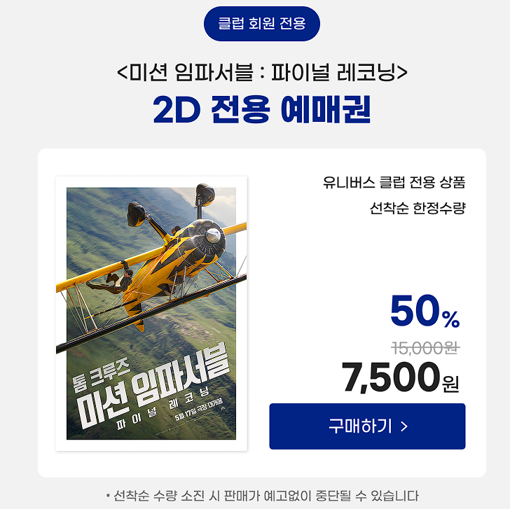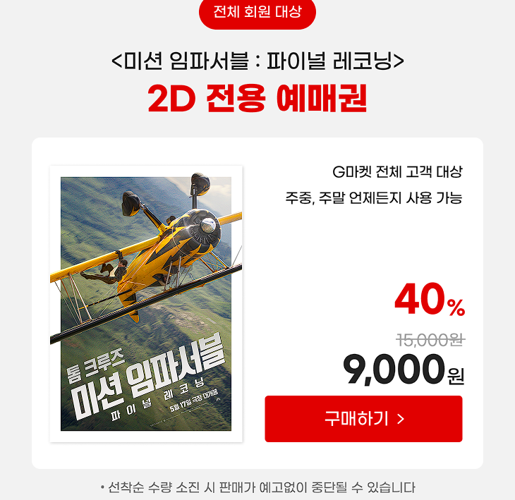 GGV 미션 임파서블 파이널 레코닝 예매권 할인 판매하네요.