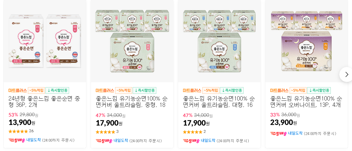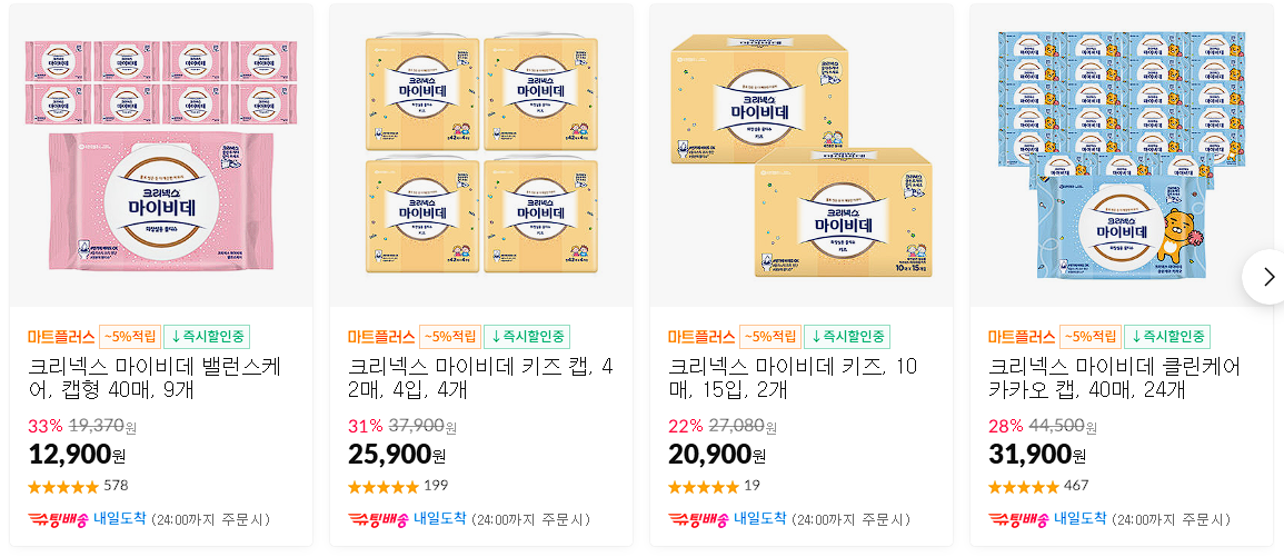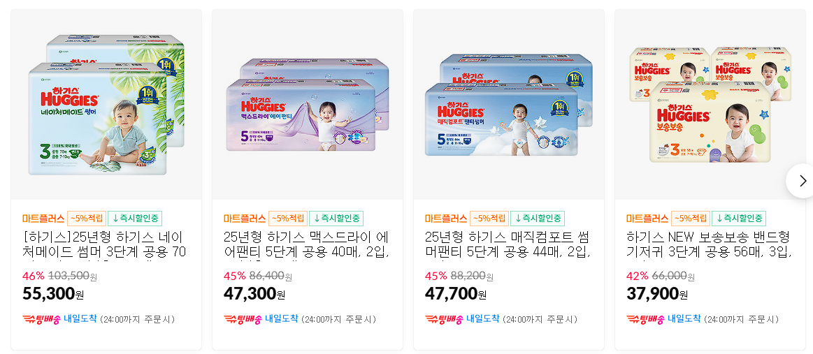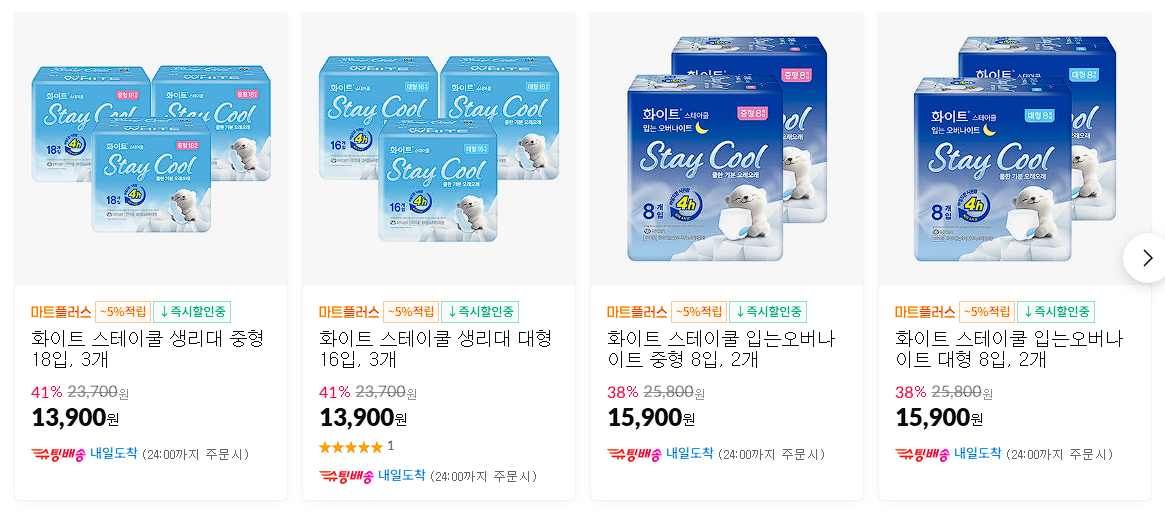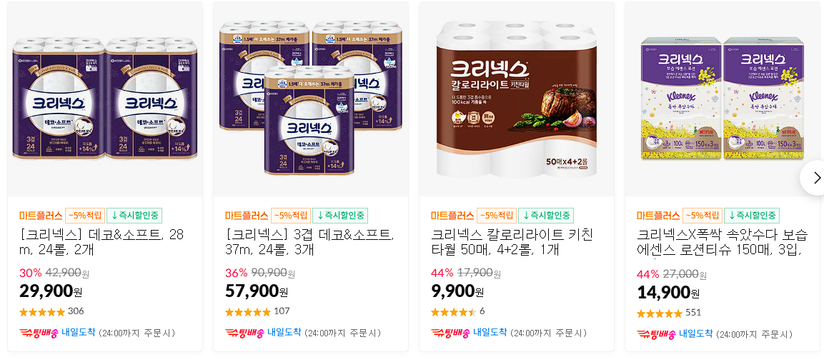 할인 품목 : 휴지, 물티슈, 생리대 등