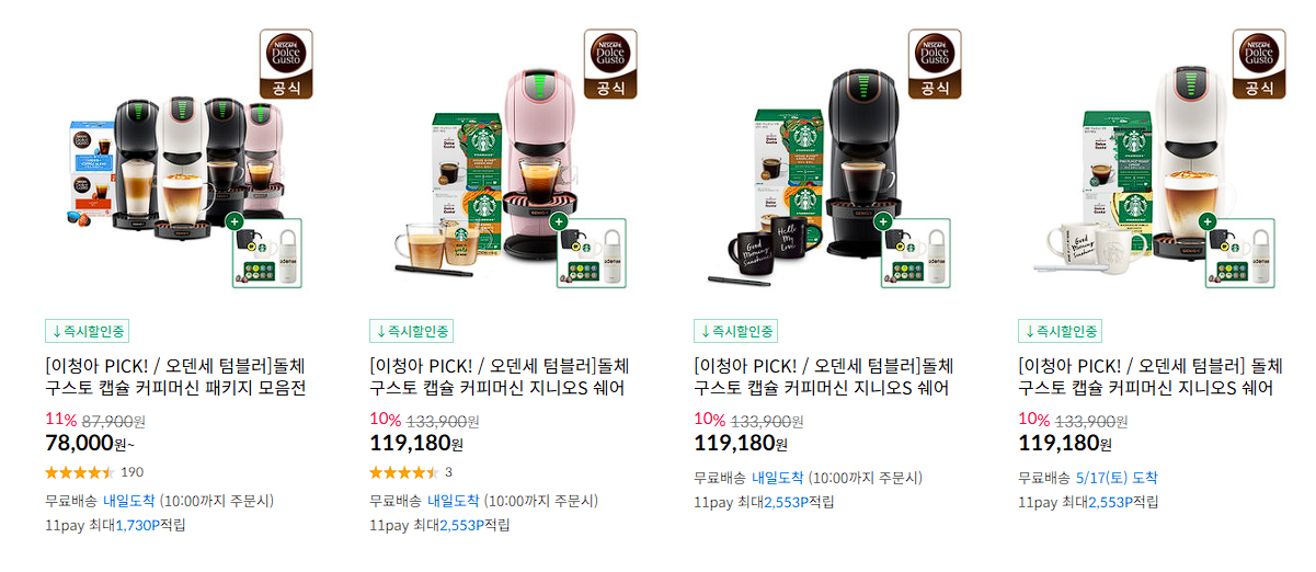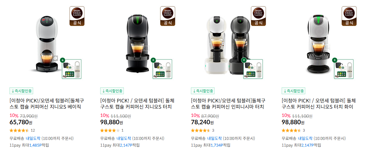 돌체구스토 커피머신 다양한 제품을 할인 판매하네요.