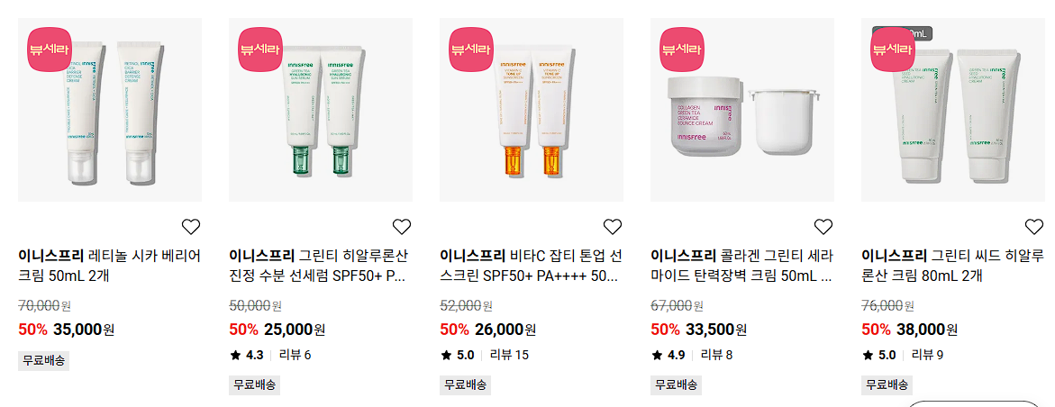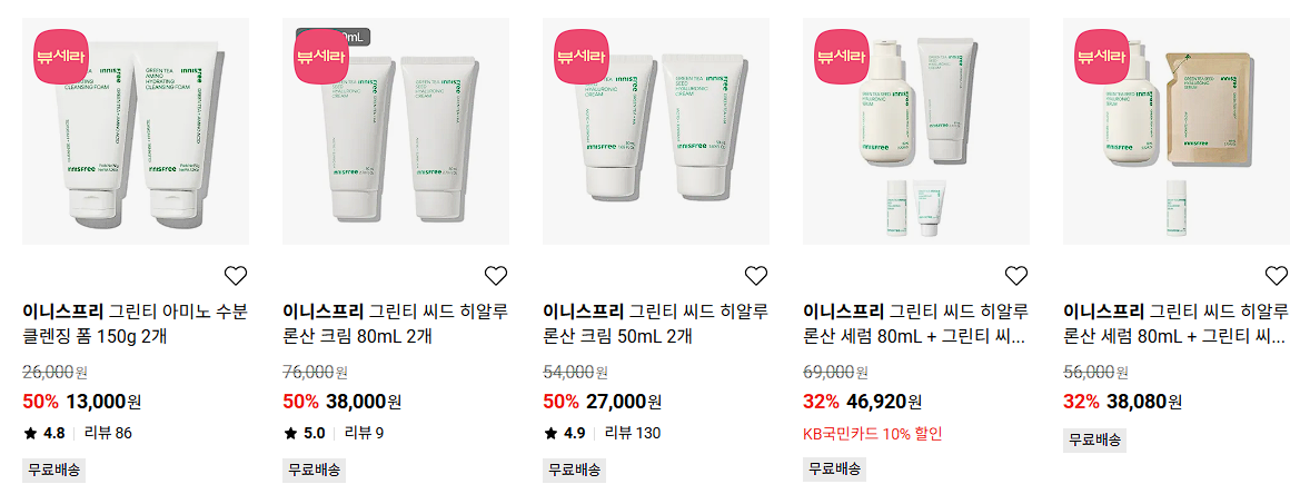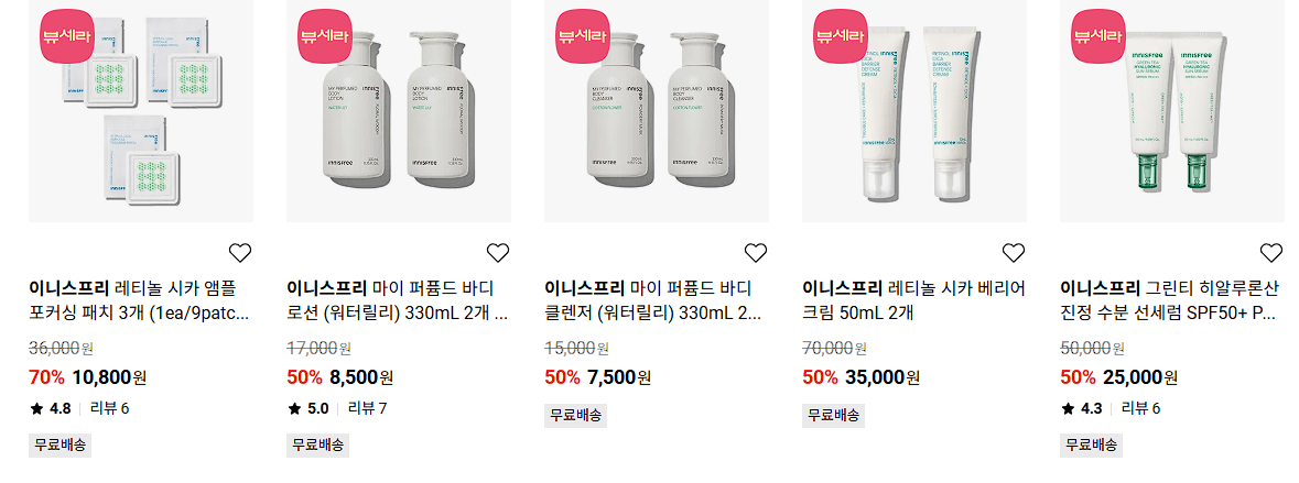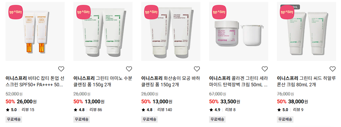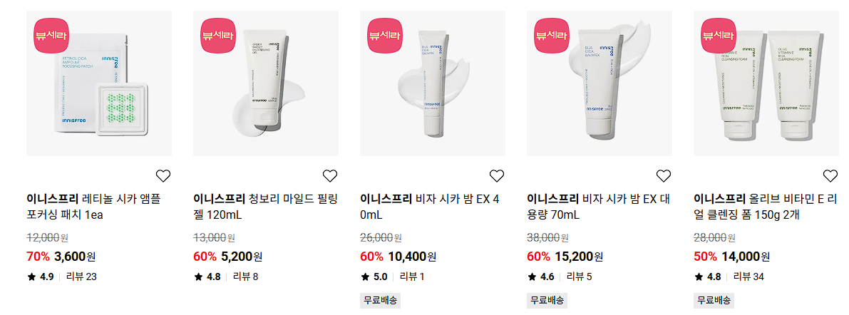 이니스프리 다양한 제품을 할인 판매하네요.