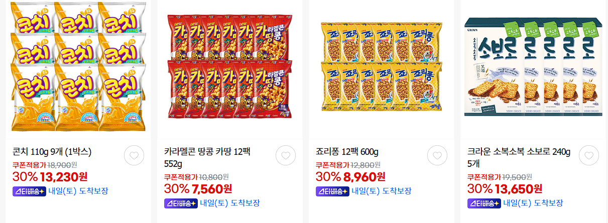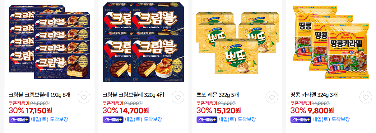 크라운제과 다양한 제품을 할인 판매하네요.
