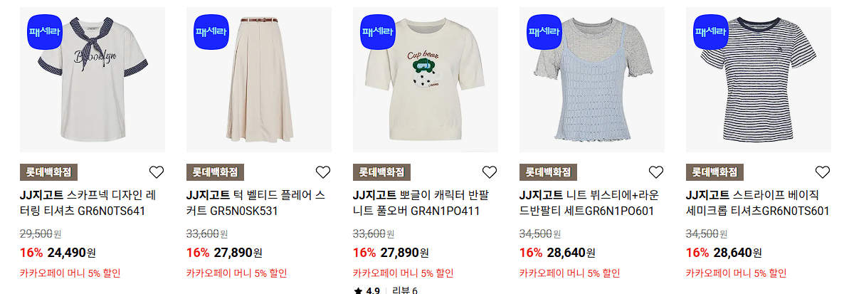 할인 품목 : 티셔츠, 스커트, 자켓 등