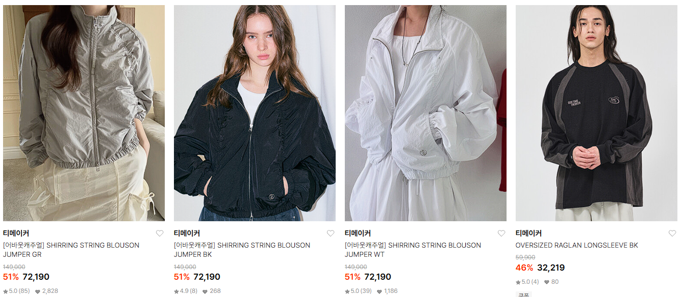 할인 품목 : 자켓, 티셔츠, 팬츠 등
