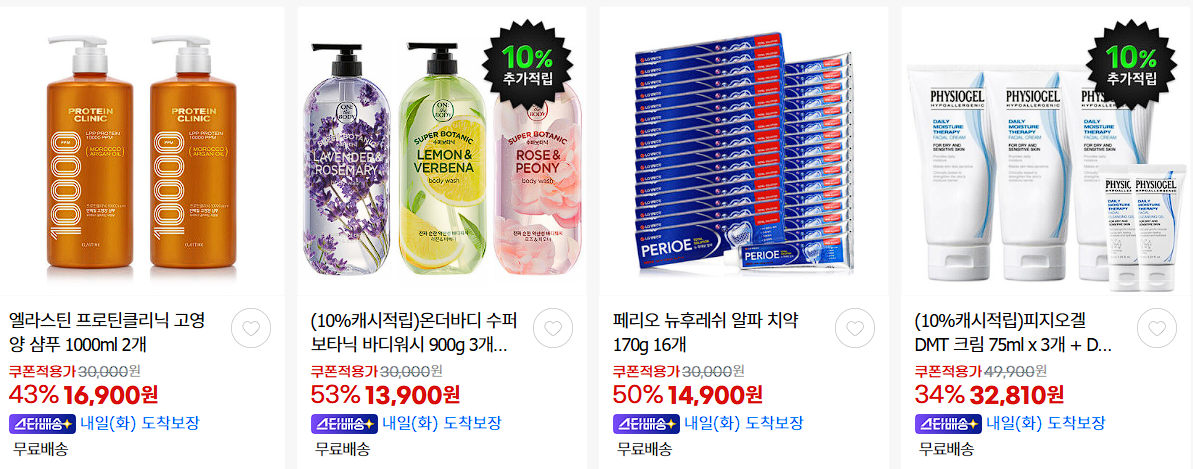 할인 품목 : 바디워시, 면도기, 세제 등