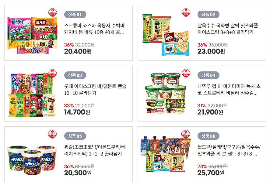 롯데웰푸드 다양한 아이스크림을 할인 판매하네요.