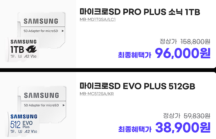 할인 품목 : 마이크로SD 프로 플러스 1TB 등