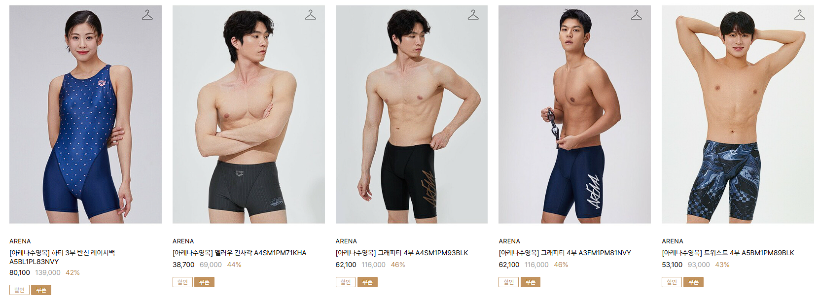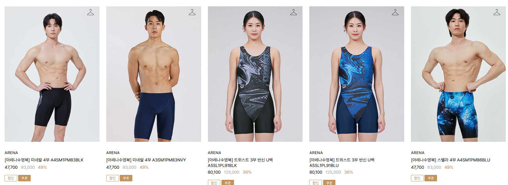 할인 품목 : 운동화, 수영복, 티셔츠 등