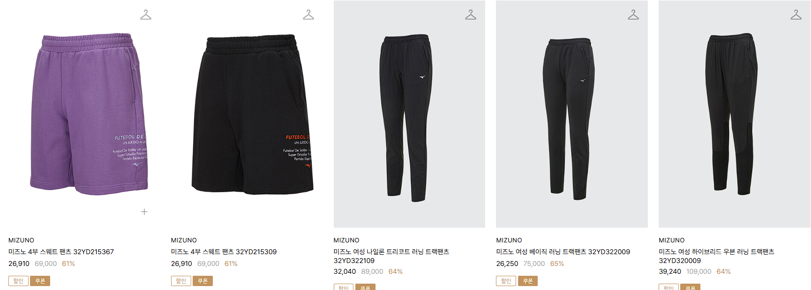 할인 품목 : 운동화, 수영복, 티셔츠 등